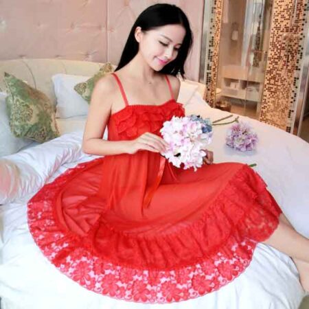 Flourish bridal beautiful princess sleepwear fairy night dress with thong panty for women made with soft fabric.