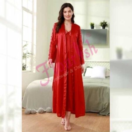 Flourish Gown Set FL-2366, 2 pieces beautiful bridal nighty with gown for women made with soft silk fabric.