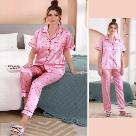Flourish FL-P2179, 2 pieces half sleeves beautiful printed silk sleepwear for women made with soft fabric.