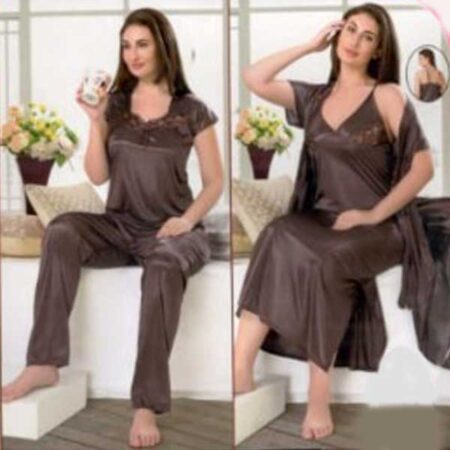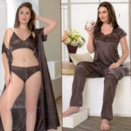 Flourish Bridal Nightwear brown 06 pieces beautiful princess sleepwear fairy night dress with bra and panty for women made with soft silk fabric.