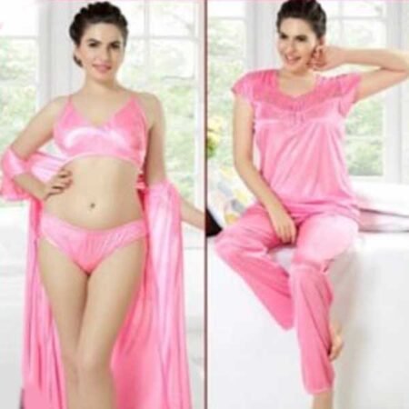 Flourish Bridal Nightwear baby pink 06 pieces beautiful princess sleepwear fairy night dress with bra and panty for women made with soft silk fabric.
