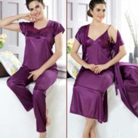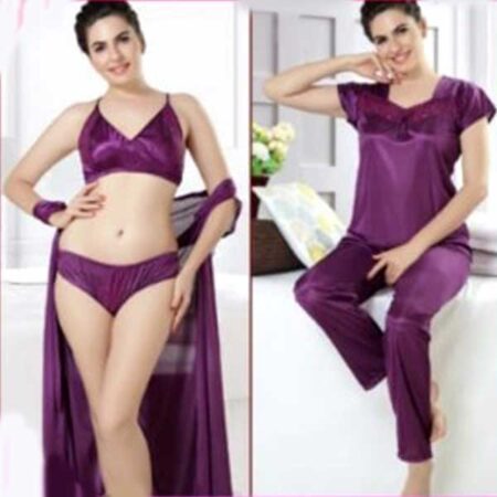 Flourish Bridal Nightwear purple 06 pieces beautiful princess sleepwear fairy night dress with bra and panty for women made with soft silk fabric.