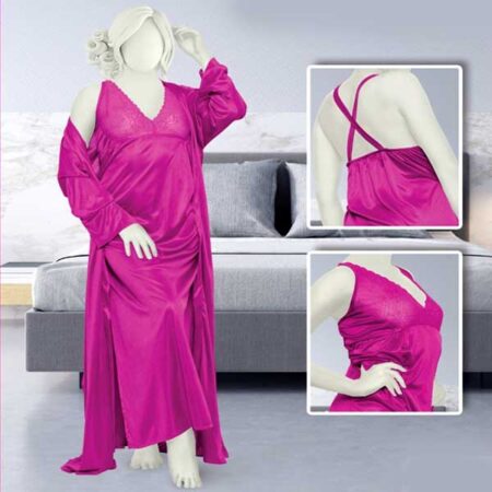 Flourish Bridal Gown 02 pieces shocking pink beautiful princess sleepwear fairy night dress for women made with soft silk fabric.