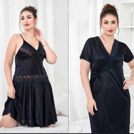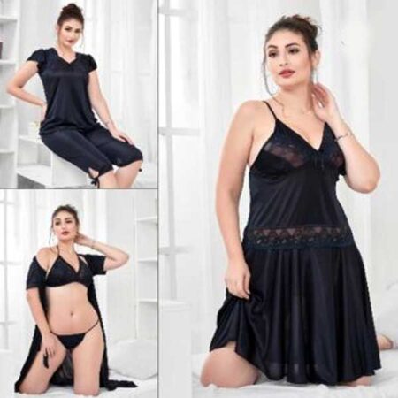 Bridal Nightwear 06 pieces beautiful princess black sleepwear fairy night dress with bra and panty for women made with soft silk fabric.