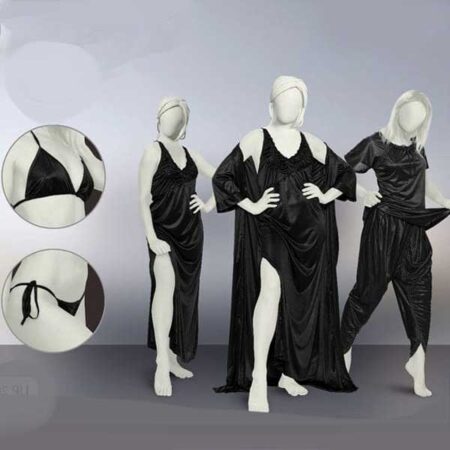 Flourish Bridal Nightwear black 03 pieces beautiful princess sleepwear fairy night dress with bikini set for women made with soft silk fabric.