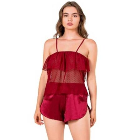 MOON Girl MG-286, 2 pieces beautiful bridal Turkish nightwear with shorts for women made with shine silk fabric.