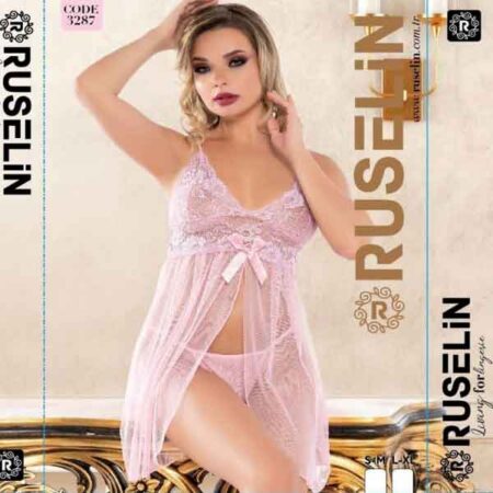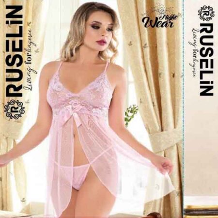 RUSELiN Lingerie pink sexy front open stylish beautiful princess nightwear fairy short nightdress for women made with soft net fabric.