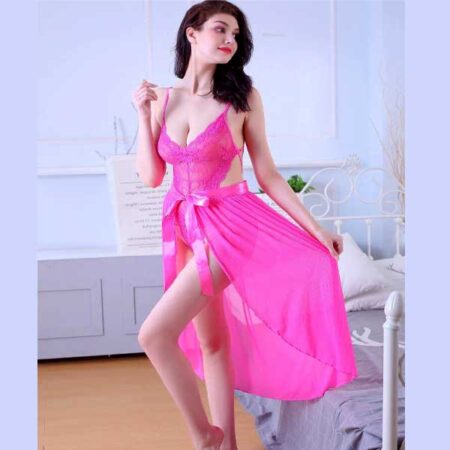 ViSATiN Lingerie white beautiful princess nightwear fairy rose pink shorts nightdress for women made with soft silk fabric.