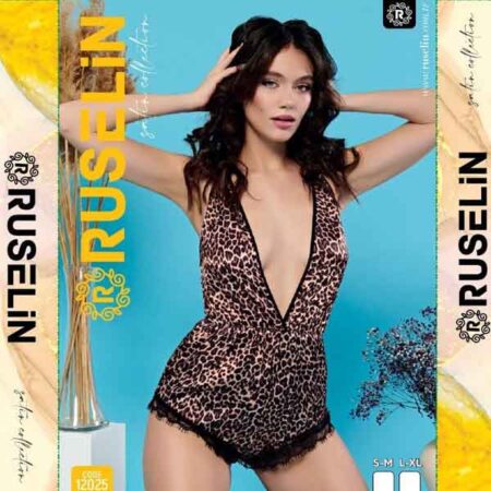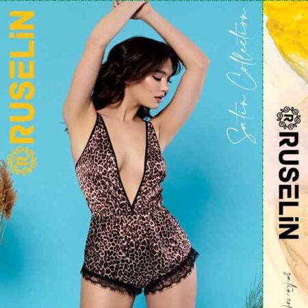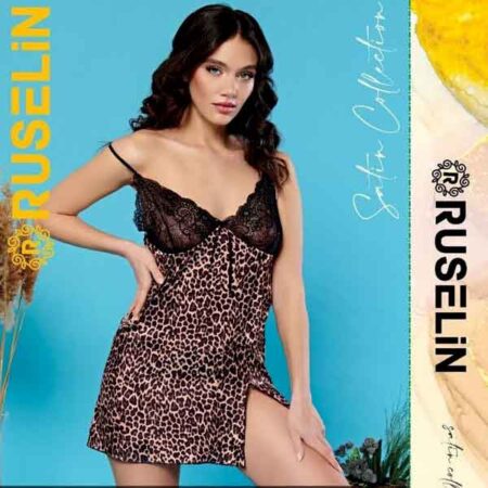RUSELiN Lingerie cheetah printed sexy deep neck beautiful princess nightwear fairy bodysuit mini nightdress for women made with soft silk fabric.