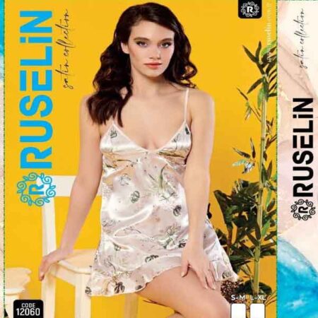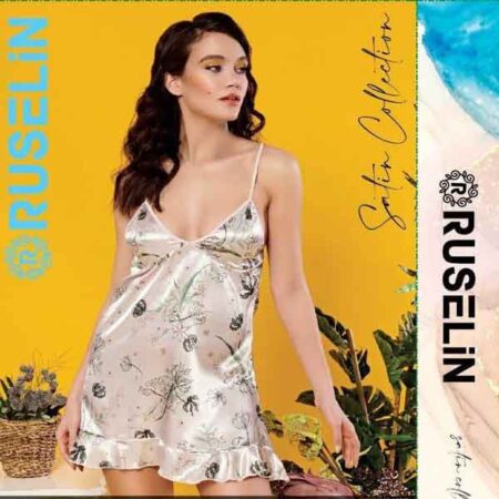 RUSELiN Lingerie flora printed beautiful princess nightwear fairy short nightdress for women made with soft silk fabric.