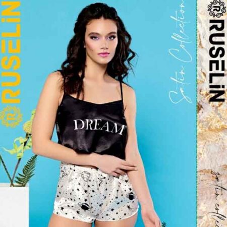 RUSELiN Lingerie sexy dream printed beautiful princess nightwear fairy short cami mini nightdress for women made with soft silk fabric.