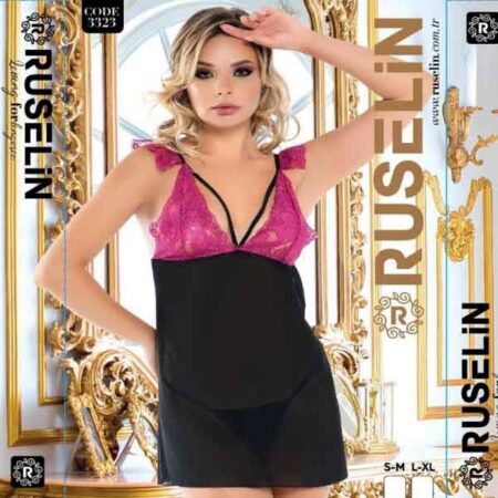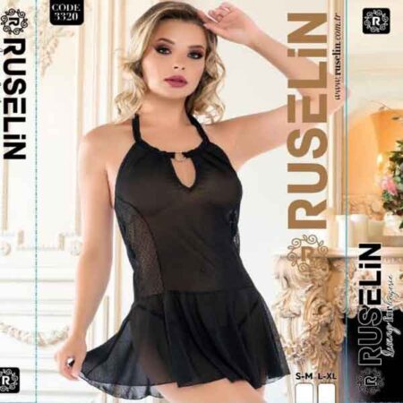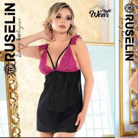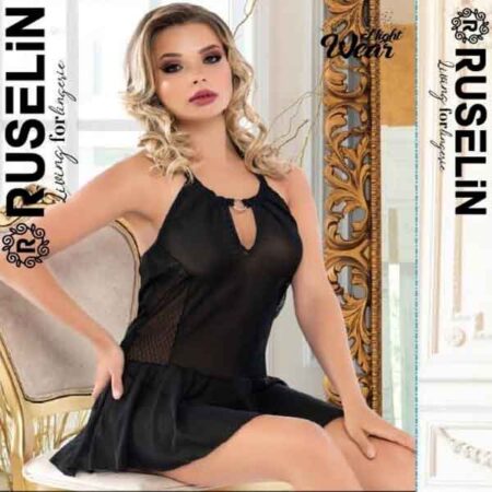 RUSELiN Lingerie deep neck stylish beautiful princess nightwear fairy short nightdress for women made with soft net fabric.