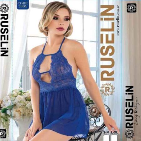 RUSELiN Lingerie blue floral lace halter neck stylish beautiful princess nightwear fairy short nightdress for women made with soft net fabric.
