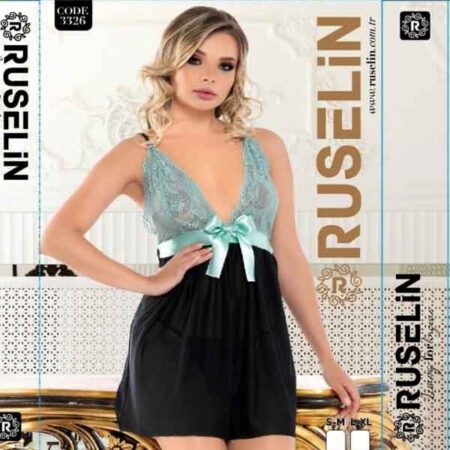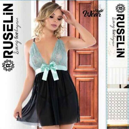 RUSELiN Lingerie sea green and black stylish beautiful princess nightwear fairy short nightdress for women made with soft net fabric.