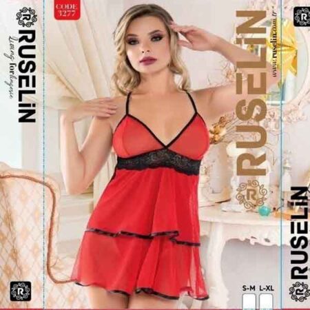 RUSELiN Lingerie red stylish beautiful princess nightwear fairy short nightdress for women made with soft net fabric.