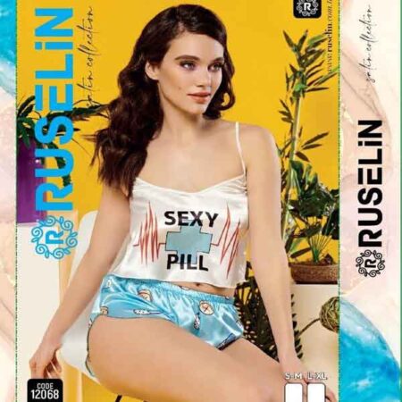 RUSELiN Lingerie sexy pill printed beautiful princess nightwear fairy short cami mini nightdress for women made with soft silk fabric.