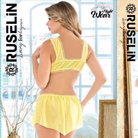RUSELiN Lingerie yellow stylish beautiful princess nightwear fairy short nightdress with shorts for women made with soft net fabric.