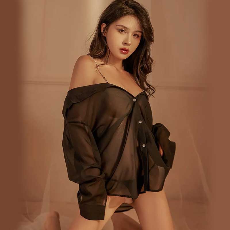 In StockFlourish BD-1056, stylish black sexy princess sleepwear fairy night dress for women made with soft fabric.