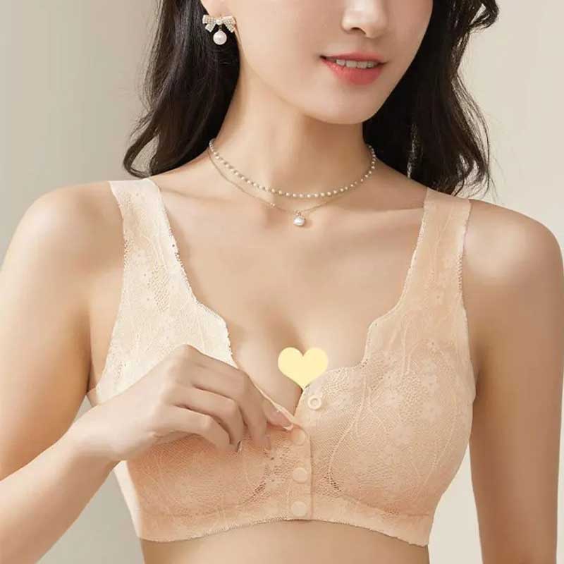 In StockMom front open button light padded breasts gathering vest style thin bra provides the full coverage and comfort.